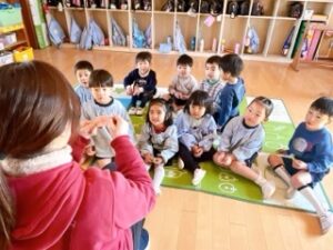 普段はいつも一緒に生活しているひよこいちご組ですが、3学期になり年少組といちご
