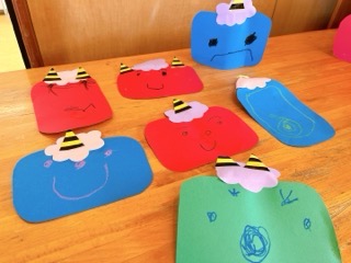 お顔はクレヨンで自分で描きましたが、皆それぞれ違ってニッコリしていたりプンプン