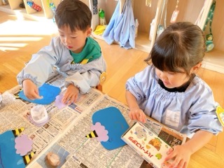 普段はいつも一緒に生活しているひよこいちご組ですが、3学期になり年少組といちご
