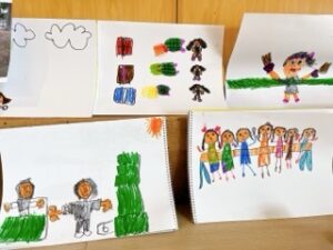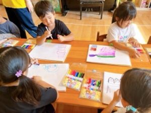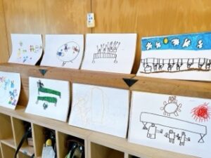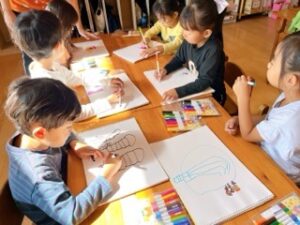 先週のことになりますが、年長組が素敵な運動会の絵を自由画帳に描いていたので紹介