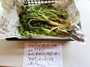 先日、畑クラブの活動日に、お母さん達と上岡さんが間引きをしてくれました!