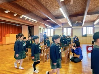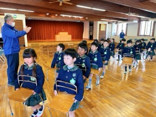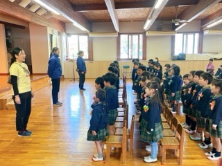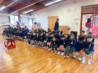 ホールに行くと、年長組が来る前から先に用意して座って静かに待っていましたよ!