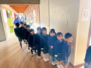 年長組も気持ちを整えて、ホールの外で入場準備です。