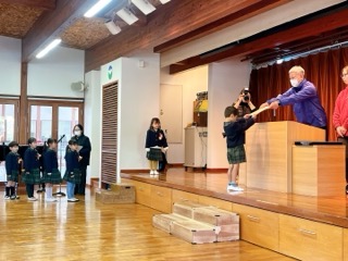 次に『園長先生の話』、そしてクラス毎に考えた『別れの言葉』を声を揃えて言いまし