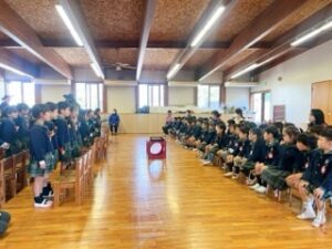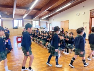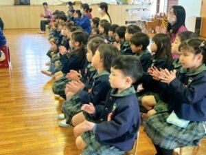 年中さんもかっこ良い年長組の姿を見て、長い時間静かに座って、真剣に参加する姿が
