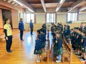 今日は、来週3月16日にある年長組の卒園式の予行がありました。