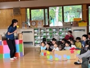 最後は、絵本を元に考えたすずらん組オリジナルの『魔法のエレベーターのお話ごっ