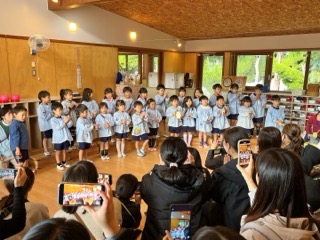 最後は見ていたお家の方から子ども達に向けて感想をお話しいただき、子ども達がとて
