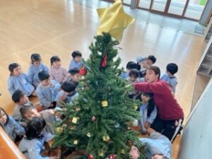 先週から幼稚園のエントランスにはクリスマスツリーが飾られています🎄