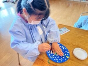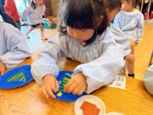 年中組のクラスでは、クリスマスを楽しみに、クリスマスの飾りを作っていました🎵