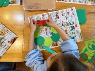 ③ツリーの形ができたら、ノリを使ってツリーにお星さまを付けました⭐