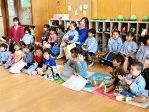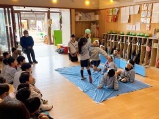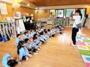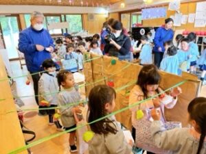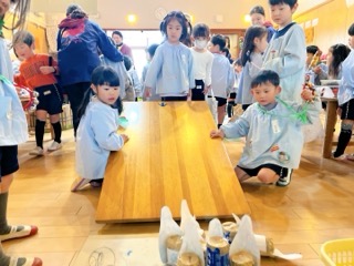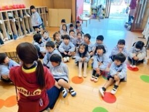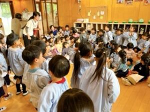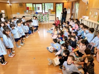 「来てからのお楽しみ!」と、幼稚園中の皆に話していたちゅうりっぷ組の子ども達。