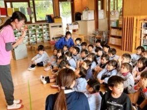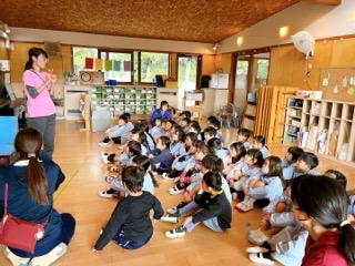 月曜日、年長組が園長先生の話を聞いている間に、年中組の子ども達がすずらん組の部