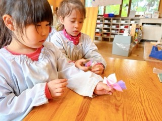 昨年度、年少児だった時には折り紙のお花のプレゼントをしましたが、「大きくなった