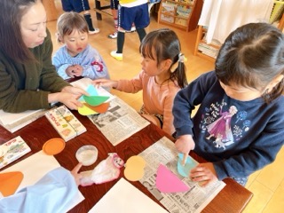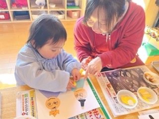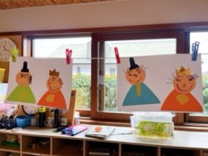 今週、年少・いちご組では、3月3日のひなまつりの「ひな人形」制作を始めました!