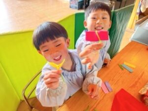 年長さんに思いを込めて渡すことを楽しみに作っている年中さんです😊