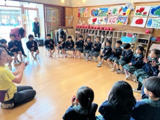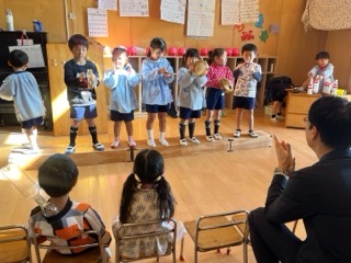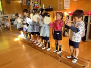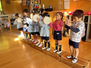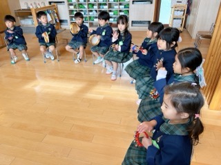 昨日、年少・いちご組が楽器で遊んでいることをお伝えしましたが、最近、年中組のク