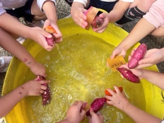 聞いてみると、先日畑で掘ってきたサツマイモを洗おうとしているところでした✨