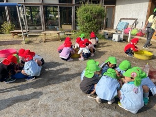 年中組の子ども達が、好きな遊びの時間に園庭に集まって何かを始めました!