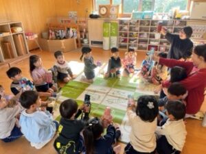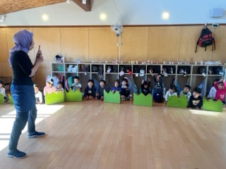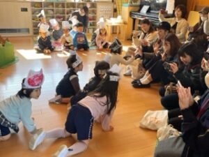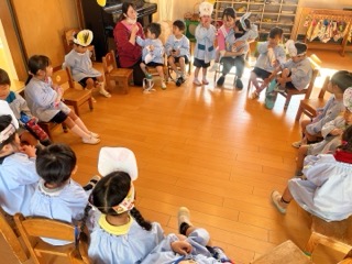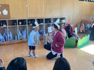 元気に歌った後は、みどり組さんが最近楽しんでいる動物のお話ごっこをしました!