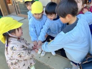 幼稚園に来る途中で見つけた氷を皆に見せようと、嬉しそうに登園した子もいました!
