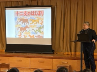園長先生からは、『十二支のはじまり』の絵本を読んでもらいました。