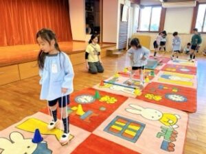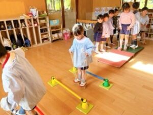 子ども達の中では、“普通に歩くだけでは簡単”だからと、「技をやろう!」と、ポック