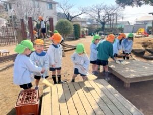 年末の大掃除の時に子ども達が自発的に行っていましたが、卒園を前にクラスの皆でや