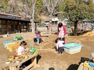 砂場や遊び道具がいつもキレイに整えられ、そのおかげで年中・年少・満三歳児は毎日