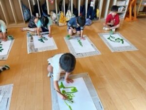 少し難しく、子ども達からなかなか答えが出ませんでしたが、茎や葉の緑に赤を少し混