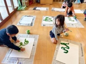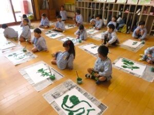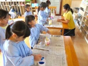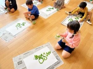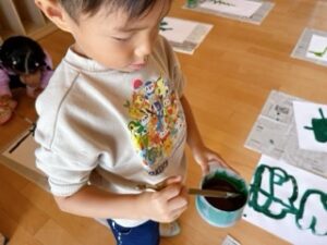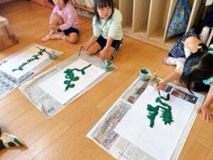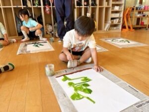 り…友達同士で見せ合って、「同じ緑なのに色が違う!」と気付いている子もいまし