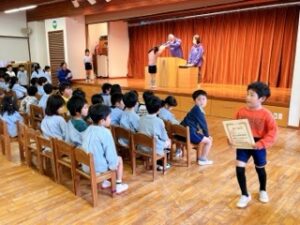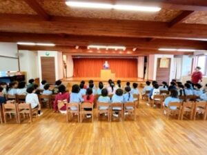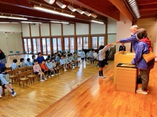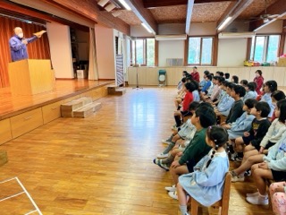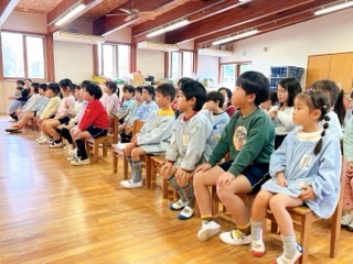 年長組は、昨日の集会後にホールに集まって、園長先生からの大事な話を聞きました。