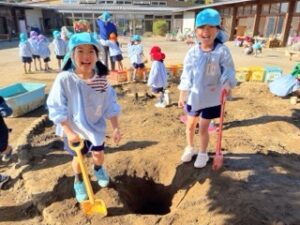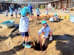 砂場に穴を掘り始めた子ども達、その後、気付いた時にはとても深い穴になっていました!