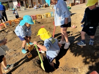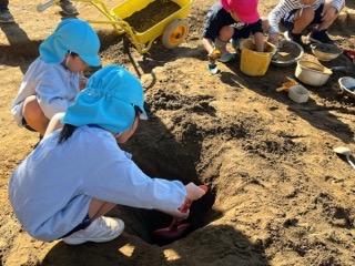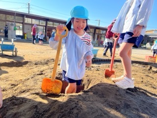 砂場に穴を掘り始めた子ども達、その後、気付いた時にはとても深い穴になっていました!