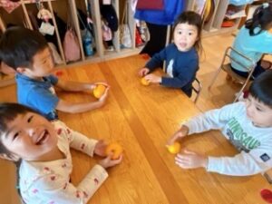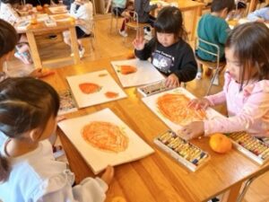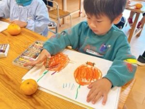 ちゅうりっぷ組は、自分で収穫した「ミカン」の絵をよ~く見て描きました!