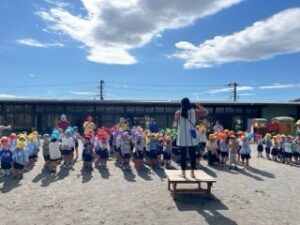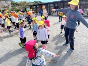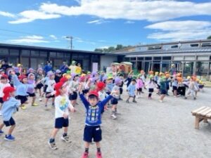 年長・年中組は、先週称名寺に一緒に行ったクラスと隣同士で整列して踊りましたよ🎵