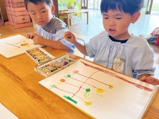 すずらん組は、ミカン狩りの「楽しかった思い出」を描きました!