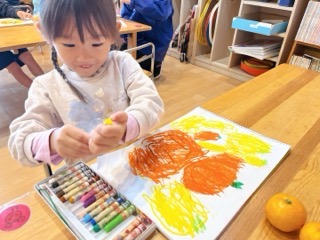 ちゅうりっぷ組は、自分で収穫した「ミカン」の絵をよ~く見て描きました!