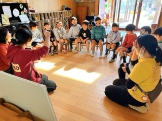 現在は、話の内容を決めたり役決めをしたり、少しずつ動いて表現しながら皆でイメー