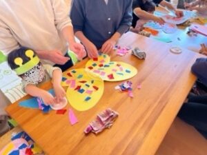 お家の人と一緒にちょうちょの羽を作りましたよ!