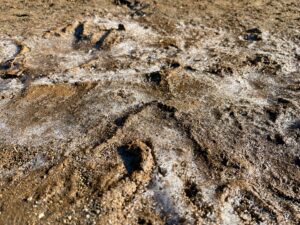 今日も砂場横にある水たまりが固まって氷になっているのを発見しました❄️