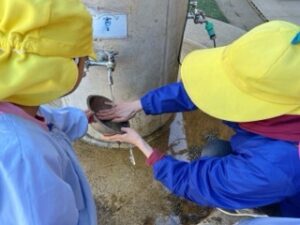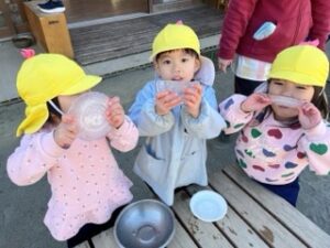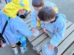 そして、氷に興味をもったみどり組とあお組でも、氷作りが始まりました❄️