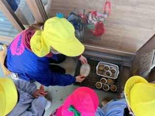 今朝、興奮した声でもも組の子ども達に名前を呼ばれ、誘われて行ってみると、なんと
