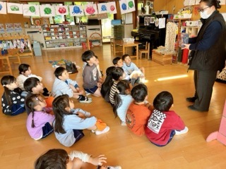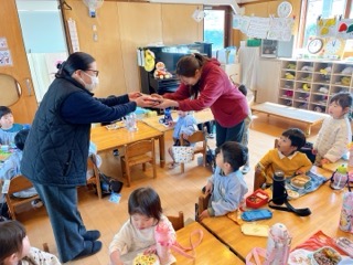 少し早いですが、大きくなった皆に「おめでとう!」と声をかけながら、副園長先生か