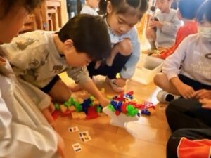 年長組には、いろいろな面白い形をしたブロックを積み重ねて遊ぶバランスゲームで