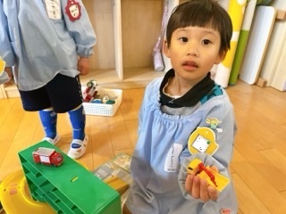 年少・いちご組には、各クラス違うトミカのプレゼントです🚙