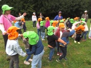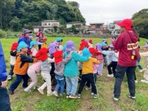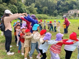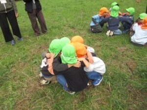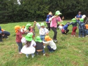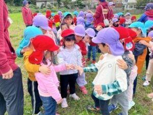 クマやハチになっている先生達が自分たちの輪に入ってこないように皆で協力します☺️