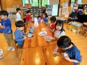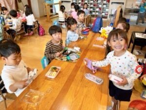 昼食時もクラスの友達を誘って食べるのではなく、年中さんに自分から声をかけて誘っ