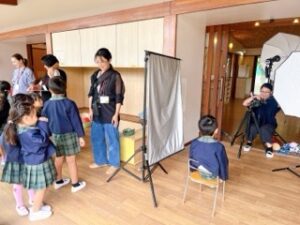 朝から八景写真館のカメラさんが来園して、年長組の卒園アルバムの個人写真を撮影し