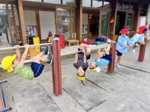 が鉄棒やリレーで遊んでいる姿がありました😊